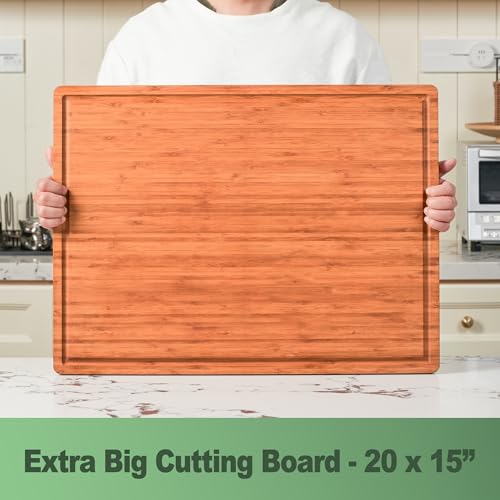 Allsum - لوح تقطيع كبير للمطبخ بسمك 2.54 سم من خشب البامبو متين وقابل للاستخدام على الوجهين مع حواف لحفظ السوائل ومقابض مناسب كلوح فرم ولوح أجبان من السوم، كبير جدًا 50.8×38.1 سم