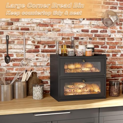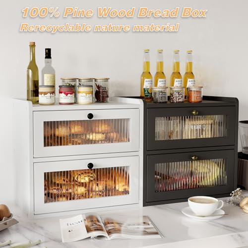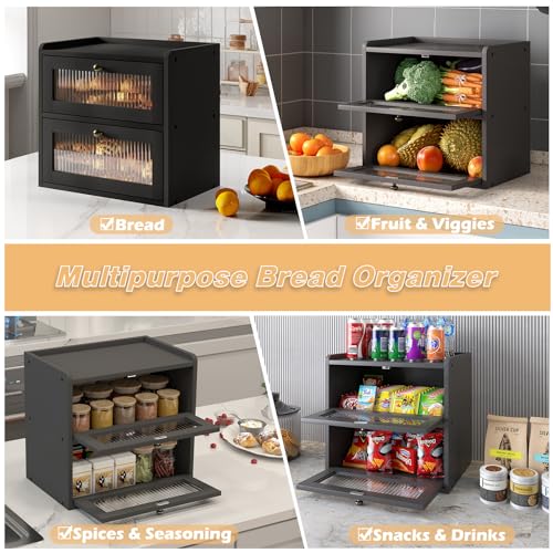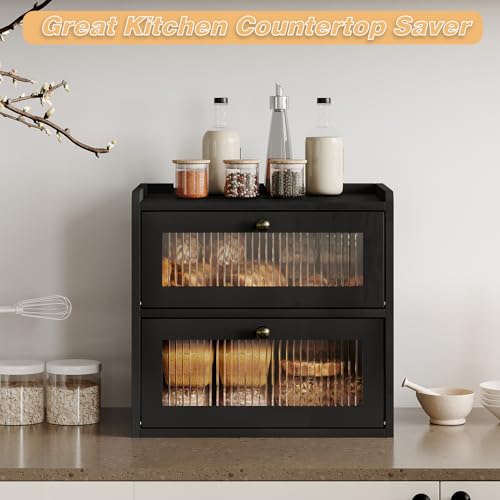 Alpeir - صندوق تخزين خبز كبير بطبقة مزدوجة لطاولة المطبخ من البير، حاوية تخزين خبز خشبية مع نافذة من الاكريليك، لون أسود
