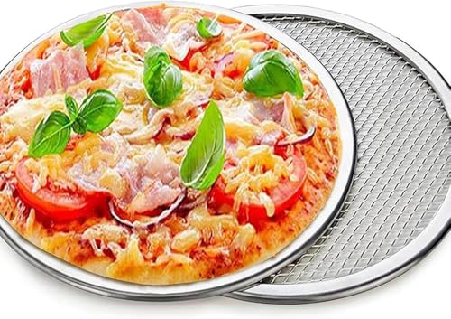 Generic - صينية شبكية دائرية غير لاصقة من الألومنيوم بحافة سلسلة لتقديم البيتزا والخبز للفرن، 35 سم