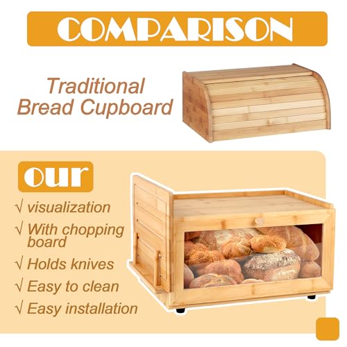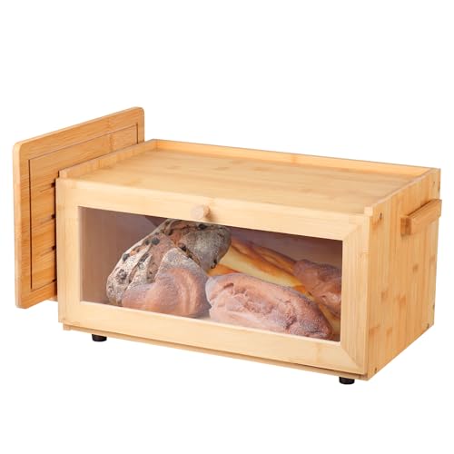 Alyoen - عياشة من البامبو مع لوح تقطيع صندوق تخزين خبز مناسب لتعليق السكاكين بتصميم بسعة كبيرة سلة جيدة التهوية للمطبخ وغرفة المعيشة والمكتب الطعام