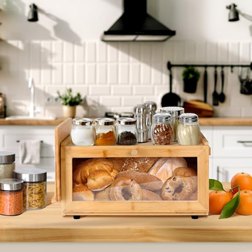 - باب شفاف لسهولة الرؤية: يسمح لك الباب الشفاف لصندوق تخزين الخبز المحمص الخاص بنا بمراقبة استخدام الخبز أو المخبوزات الأخرى في أي وقت، ومع تصميم مغناطيسي على قفل الباب، يمكنك إغلاق الباب بسهولة.