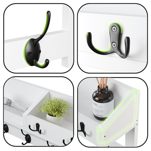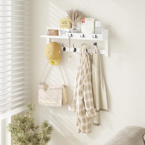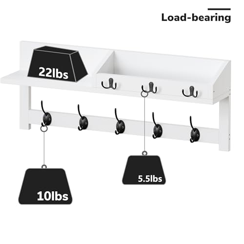 - رف إضافي موفر للمساحة وخطافات مفاتيح لحل التخزين: 26.5 × 5.1 انش في الأعلى مع حافة توفر مساحة كبيرة لأدوات الزينة أو تخزين الأشياء؛ لا يمكنك فقط استخدام رف المعاطف الجداري هذا لعرض النباتات أو المجموعات أو غيرها من الملحقات المنزلية ولكن أيضًا عرض إطارات الصور والنباتات والحروف والبطاقات البريدية والمفاتيح وما إلى ذلك