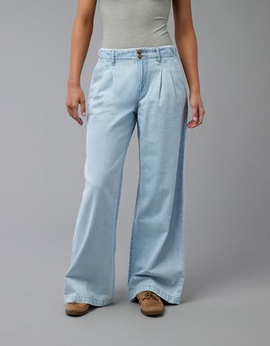 American Eagle - بنطلون جينز للنساء مصنوع من قماش ستريجيد بقصة أرجل واسعة وخصر مرتفع من اميريكان ايجل