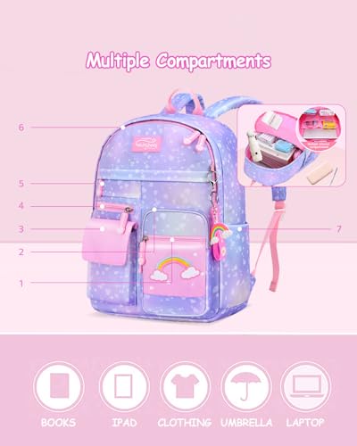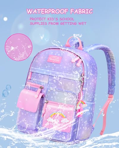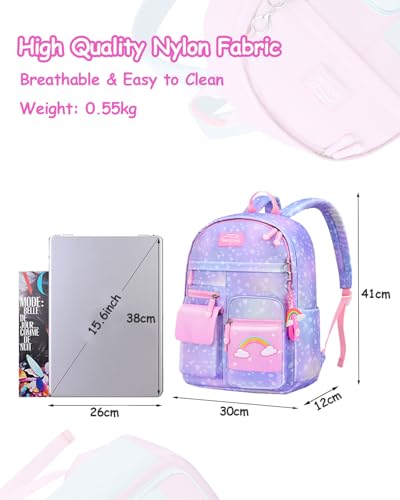 Amythe - شنطة ظهر للبنات من اميث، شنطة ظهر مدرسية للبنات من الصف 1-3، شنطة مدرسية نايلون خفيفة الوزن ومقاومة للماء للاطفال من سن 6-10 سنوات