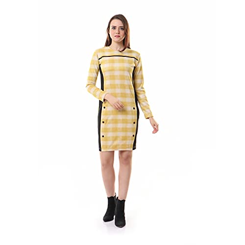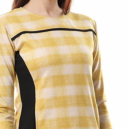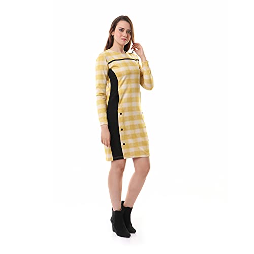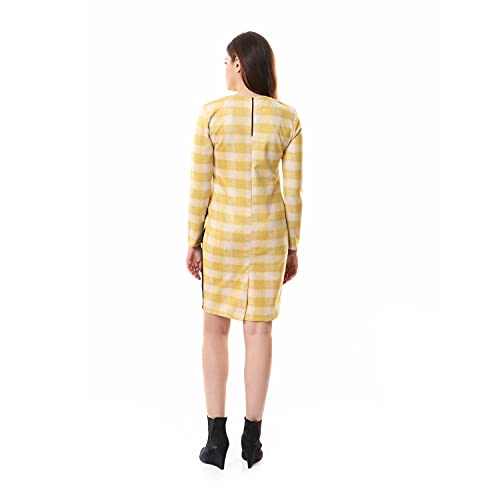 Andora - فستان كاجوال كاروهات مزين بازرار للنساء من اندورا - لونين اصفر واسود