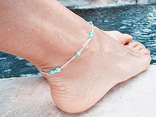 Other - خلخال للاقدام الجميلة بلون فضي مع خرز تركواز رقم 586 -17 -2، للنساء
