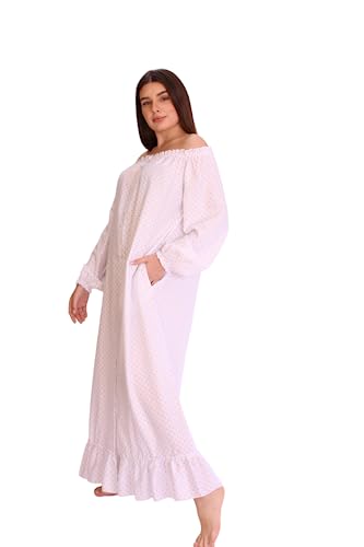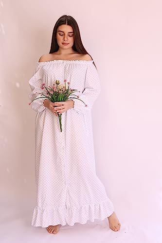 Antika Cotton - ثوب نوم طويل من القطن من انتيكا بتصميم منقط بلون بيبي بلو