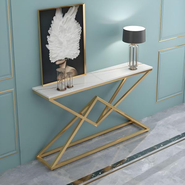 AR Corner - طاولة جهاز تشغيل ألعاب الفيديو الرقمية بإطار صلب من ايه ار كورنر، طول 40 سم × عرض 120 سم × ارتفاع 90 سم، أبيض/ ذهبي M0246
