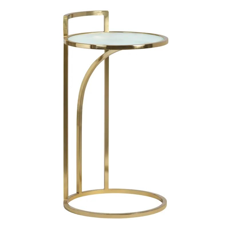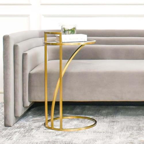 AR Corner - طاولة جانبية بإطار من الفولاذ مقاوم للصدأ بزاوية ايه ار، قطر 40 سم × ارتفاع 70 سم، لون ذهبي