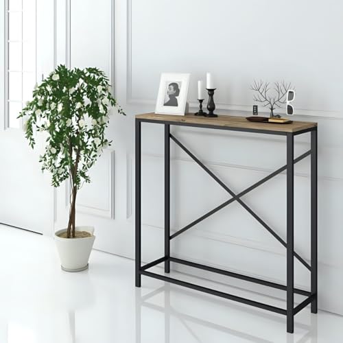 AR Corner - طاولة كونسول من الصلب من ايه ار كورنر، طول 30 سم × عرض1.1 متر × ارتفاع 90 سم، أسود/بني