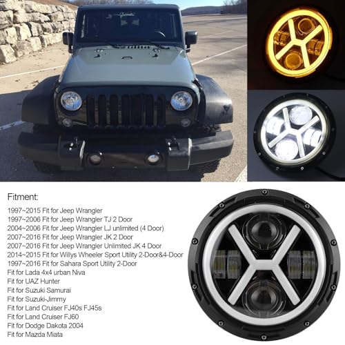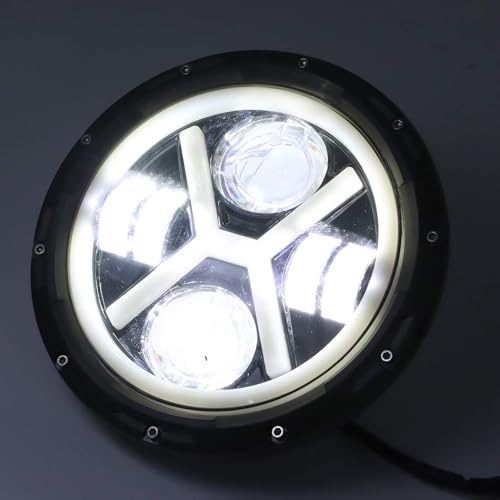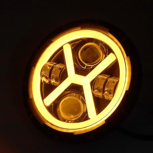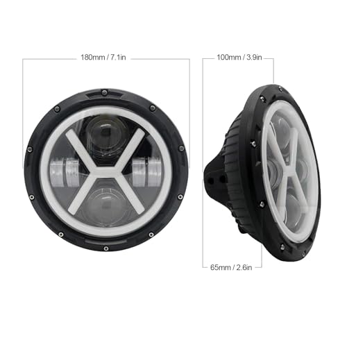 Aramox - فانوس أمامي ليد دائري بشكل حرف X بإضاءة ساطعة بلون أبيض وأصفر للسيارة من اراموكس، 18 سم
