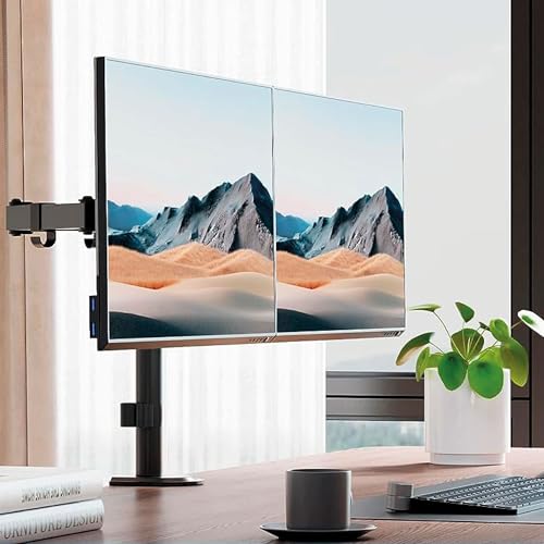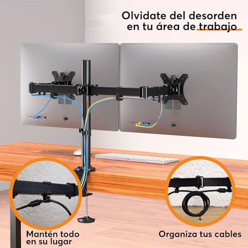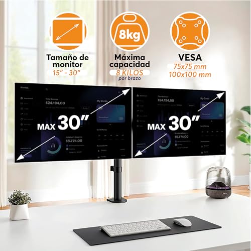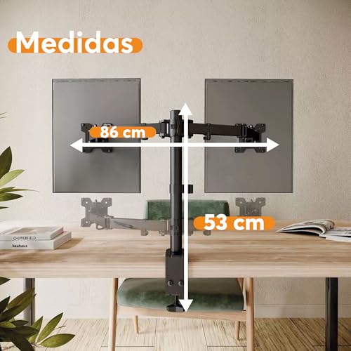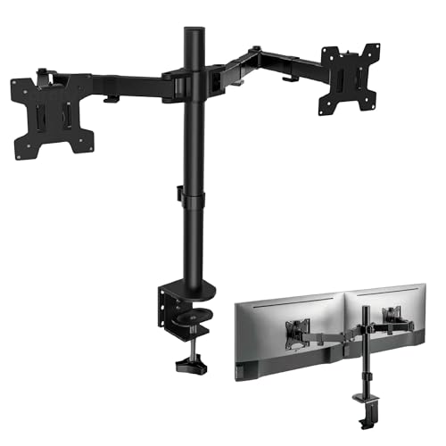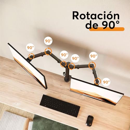 Archy - حامل شاشة مزدوج لمقاسات 15 إلى 30 بوصة مزوَّد بذراع لشاشتين وقاعدة تتحمل حتى 8 كجم، مع منظم للكابلات ومنظم مكتب دوار، وقابل لتعديل الارتفاع من اركي، لون أسود (مزدوج)