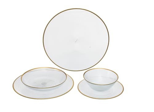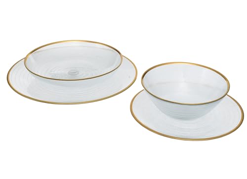 ArdaCam - طقم عشاء بقاعدة وحافة ذهبية - مجموعة من 25 قطعة مناسب لـ 6 أشخاص من اردا كام