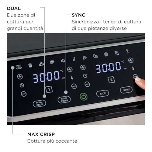 Ariete - مقلاة هوائية 4625 ومزودة 11 برنامج مضبوط مسبقا وشاشة رقمية بسلة مزدوجة آمنة للاستخدام في غسالة الأطباق وتقنية الهواء السريع ودرجة حرارة قابلة للتعديل من 80° إلى 200° من اريتي، سعة 9 لتر