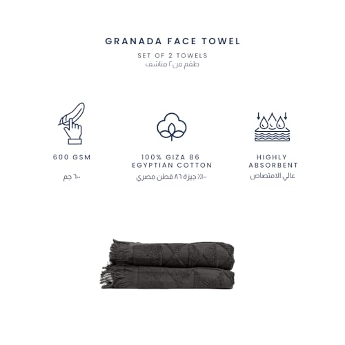 Ariika - فوطة وجه غرناطة مصنوعة من قطن جيزة 86 المصري بنسبة 100%، ناعمة ومتينة وأنيقة مقاس 1 × 0.5 م من اريكا، لون رصاصي، طقم من 2 قطعة