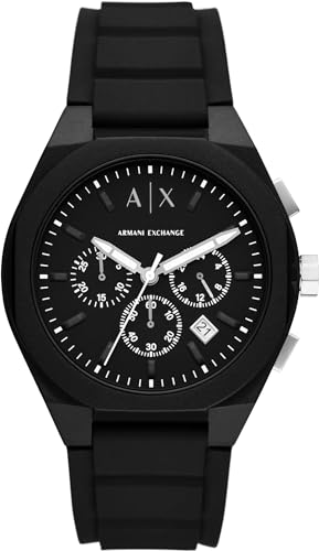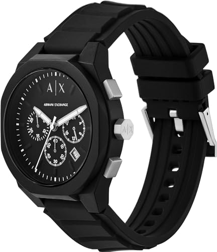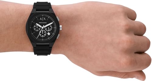 Armani Exchange - ساعة يد من الفولاذ المقاوم للصدأ والسيليكون للرجال من ارماني اكستجينج، أسود 44 ملم، 1961