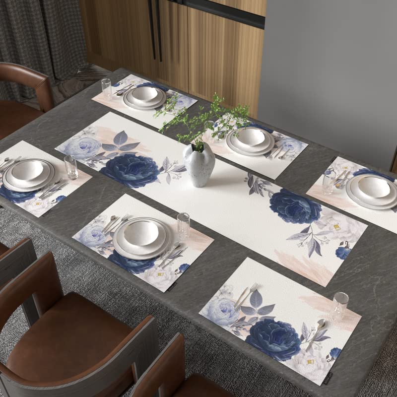 - 6 قطعة من مفارش الأطباق ومفرش الطاولة، متوفرة بمجموعة واسعة من الألوان يمكنك بسهولة العثور على خيار ونمط يتناسقان مع غرفة طعامك