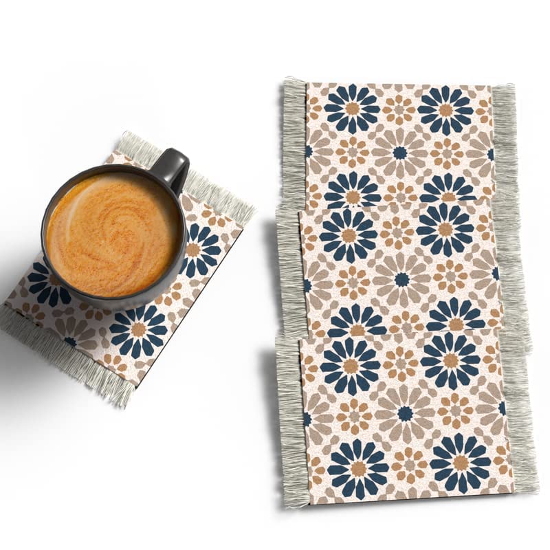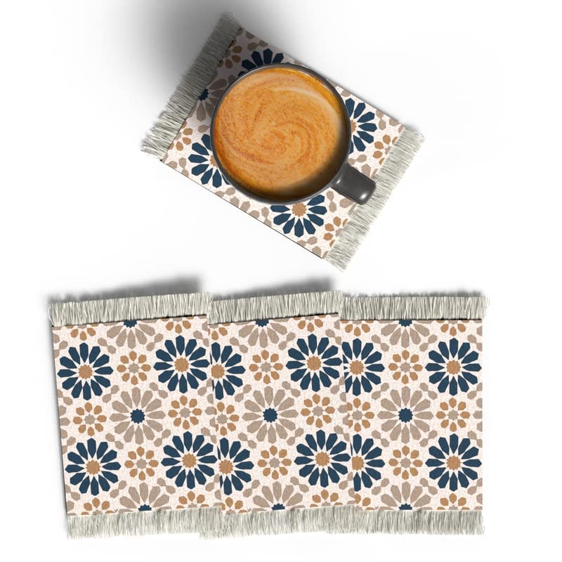 ART MOOD HOME - قواعد أكواب بطابع إسلامي بتصميمات فريدة من نوعها من ارت مود هوم، مجموعة من 4 قواعد اكواب بنمط سجادة