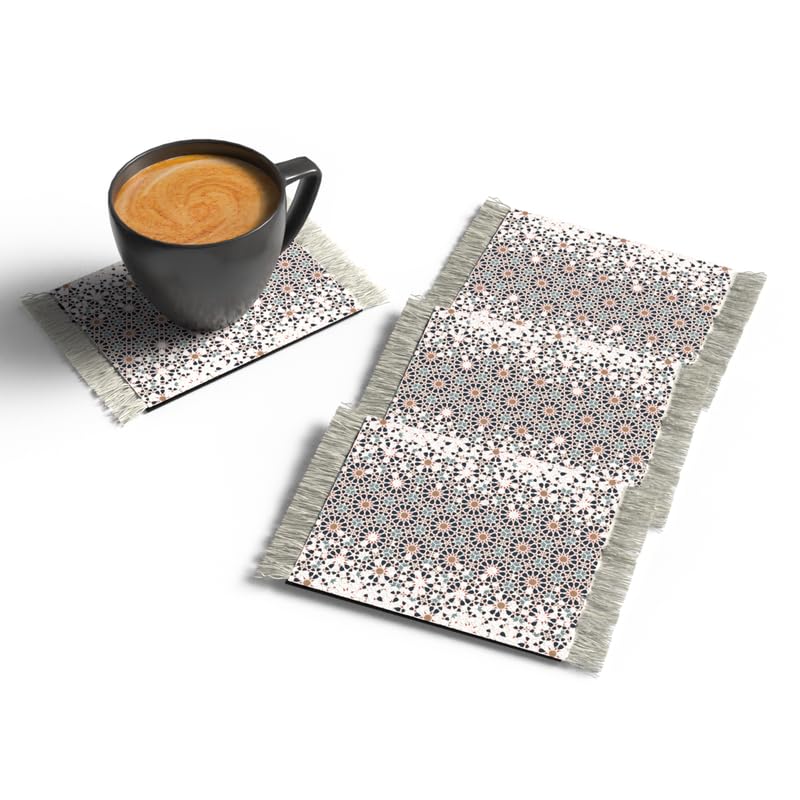 • الوظيفة التي تلبي النمط: ارتقِ بتجربة أدوات الشرب الخاصة بك مع مجموعتنا المكونة من 4 قواعد أكواب! مصممة لمحاكاة ركوب السجاد السحري، هذه القواعد الفريدة هي إصدارات مصغرة من السجاد الأصلي، كاملة مع شراشيب بيضاء حقيقية على الجانبين لتكمل إعداد طاولتك بشكل جميل.