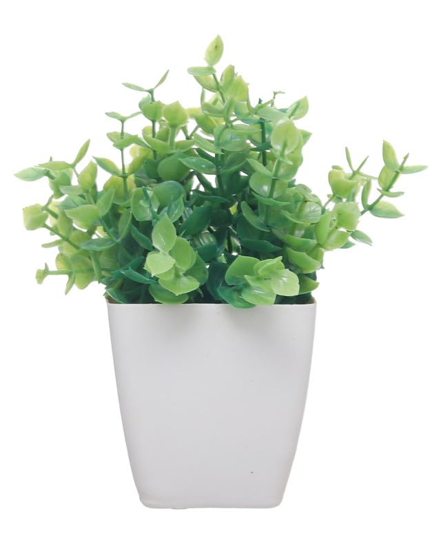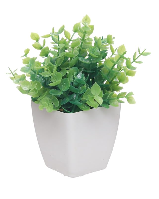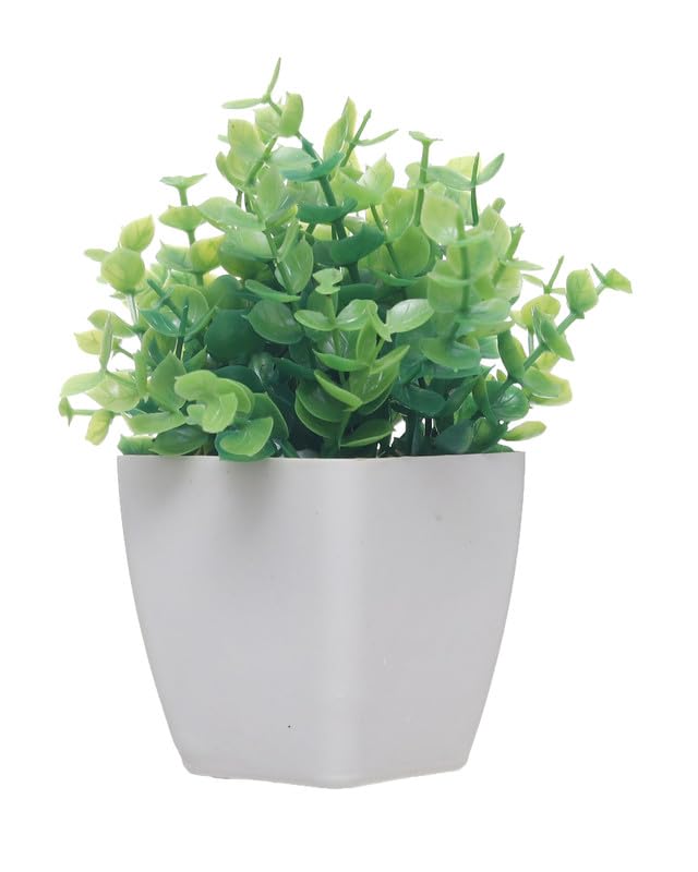 Generic - نبات صناعي بوعاء بلاستيك مقاس مقاس 10 × 6 سم - اوف وايت و اخضر