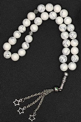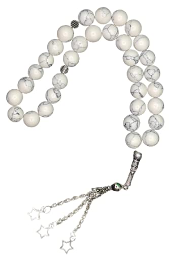 Generic - سبحة لون اوف وايت من حجر الفيروز الصناعي - فواصل معدن -33 حباية، للجنسين