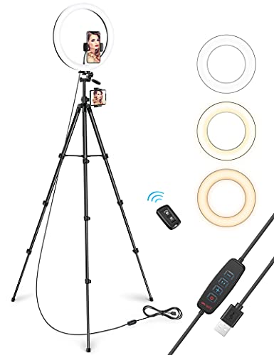 ARVOV - حلقة إضاءة لصور السيلفي مقاس 30 سم مع 3 أوضاع ألوان وسطوع قابل للتعديل، حامل ثلاثي القوائم قابل للتمديد و2 حامل موبايل وغالق بلوتوث عن بعد للتصوير والمكياج ومدونات الفيديو والبث المباشر واليوتيوب