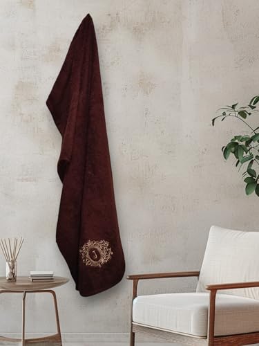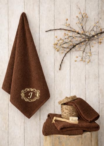 Generic - منشفة حمام فاخرة مطرزة من اجلك مصنوعة من القطن بنسبة 100%، عالية الامتصاص وسريعة الجفاف، مناشف حمام كلاسيكية عالية الجودة للفنادق والمنتجعات الصحية (تطريز حرف J) (بني، 110 * 55) من اسينا