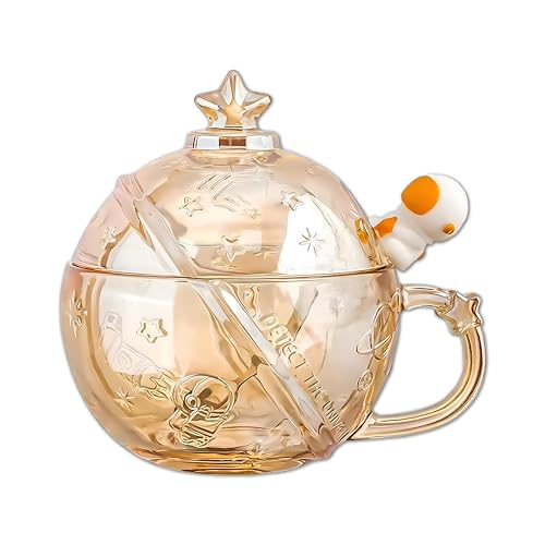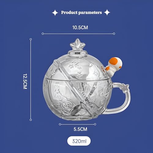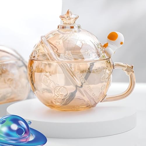 Generic - مج رائد فضاء وكوب قهوة بتصميم مبتكر من السيراميك مع غطاء وملعقة مثالي للشاي والماء والحليب بتصميم فريد من نوعه على شكل كوكب منقوش