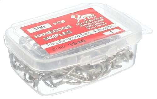 Au Lion D'Or - علبة خطافات صيد الأسماك 1540 من او ليون دور، لون فضي، مقاس 1، عدد 100