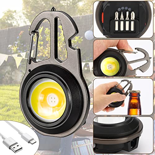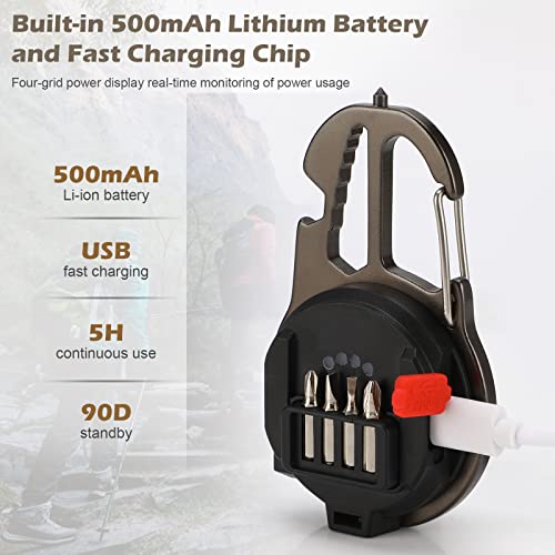 Generic - مصباح يدوي صغير كوب من اوجوت، مصباح 500 لومن متعدد الوظائف بحلقة مفاتيح، مصباح سلسلة مفاتيح صغير قابل للشحن مع 6 أوضاع إضاءة محمولة وفتاحة زجاجات ومفك براغي للتخييم والمشي والصيد والطوارئ