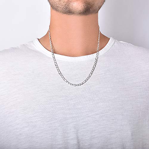 NYC Sterling - سلسلة فيجارو من الفضة الستيرلينج عيار 925 مصنوعة بحرفية متميزة في ايطاليا للرجال والنساء بطول 16-30 بوصة ومثالية للارتداء اليومي والمناسبات الخاصة ان واي سي