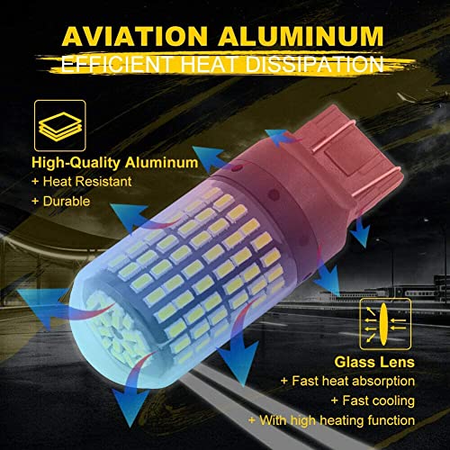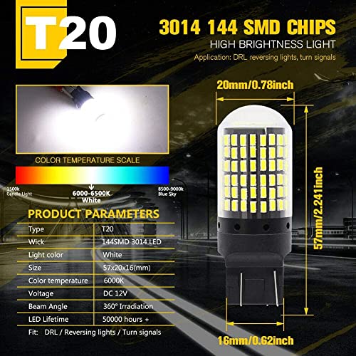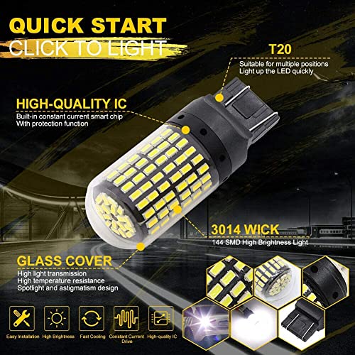 - 【سطوع فائق】مصابيح فرامل ليد من اوتوميز T20 7443 مصممة برقائق 3014 144-اس ام دي مثبتة شعاعيًا حول المصباح، مما يوفر زاوية إضاءة كاملة 360 درجة، مما يسمح لك برؤية أبعد وتوفير انعكاس أعلى على الطريق.
