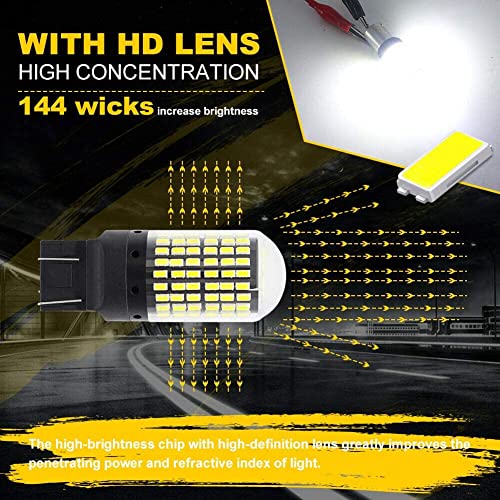 Automaze - مصباح كانباص مزدوج الوصلات/ الدبوس/ الطفو خالي من الأخطاء 15 وات 144 ليد / اس ام دي للفرامل 12 فولت 7443 7440 T20 من اوتوميز، لمبات كهربائية خلفية (لون أبيض)
