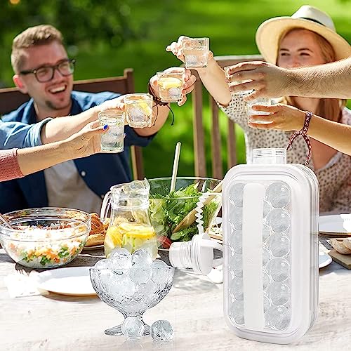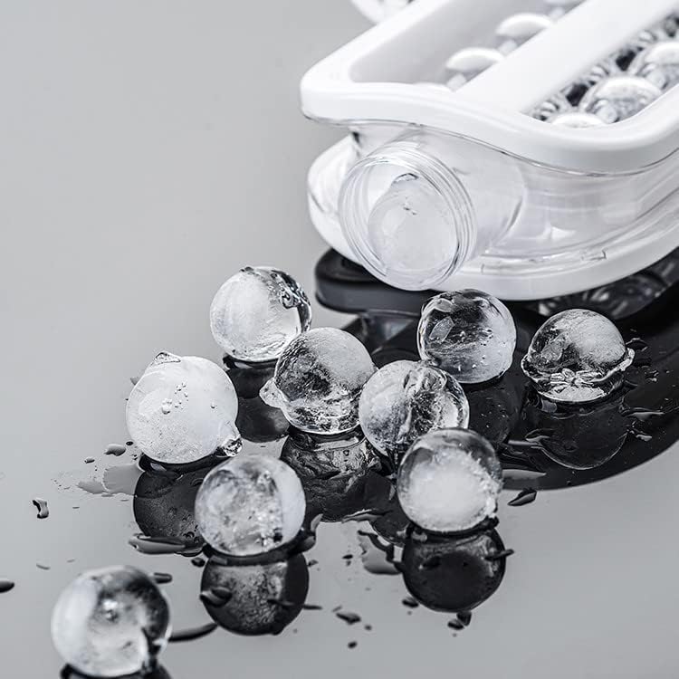 AWH - ايه دبليو اتش صواني مكعبات ثلج محمولة 2 في 1 لصنع كرات الثلج مع 17 شبكة تبريد قوالب مكعبات الثلج مع غطاء للقهوة والويسكي والهوكي والشمبانيا والبيرة - ابيض