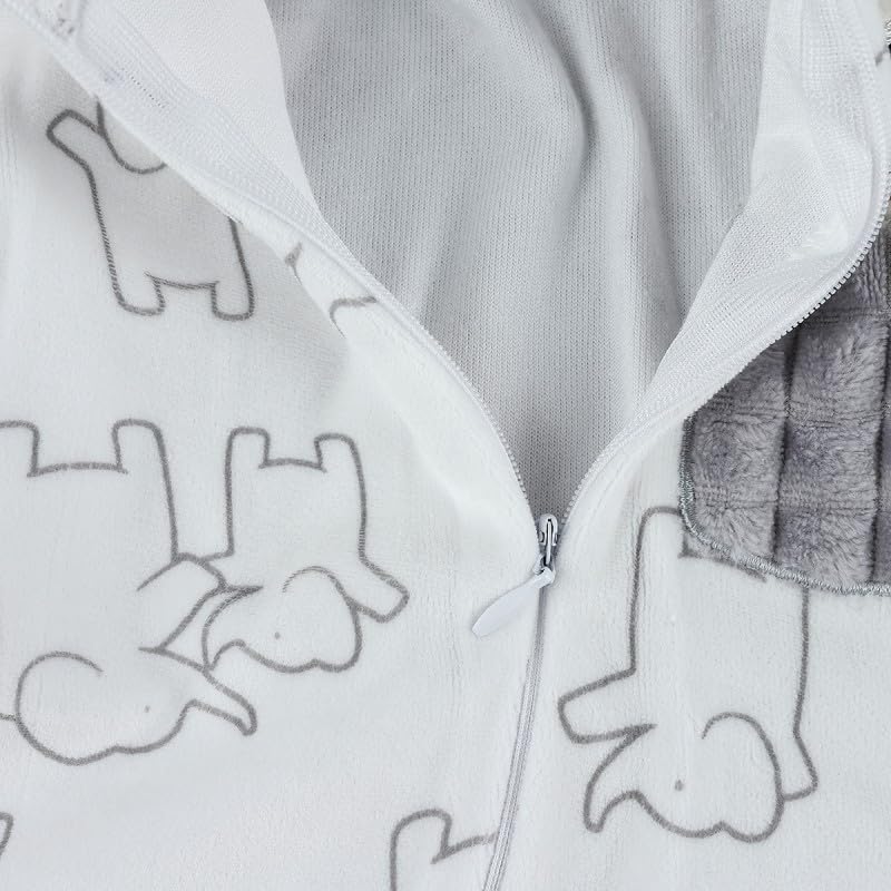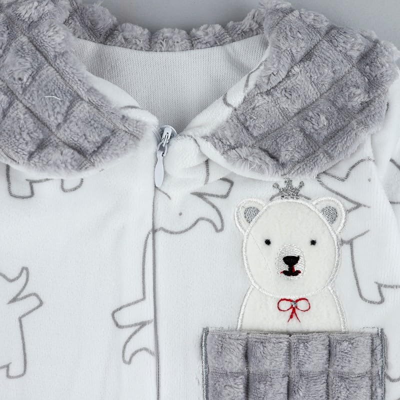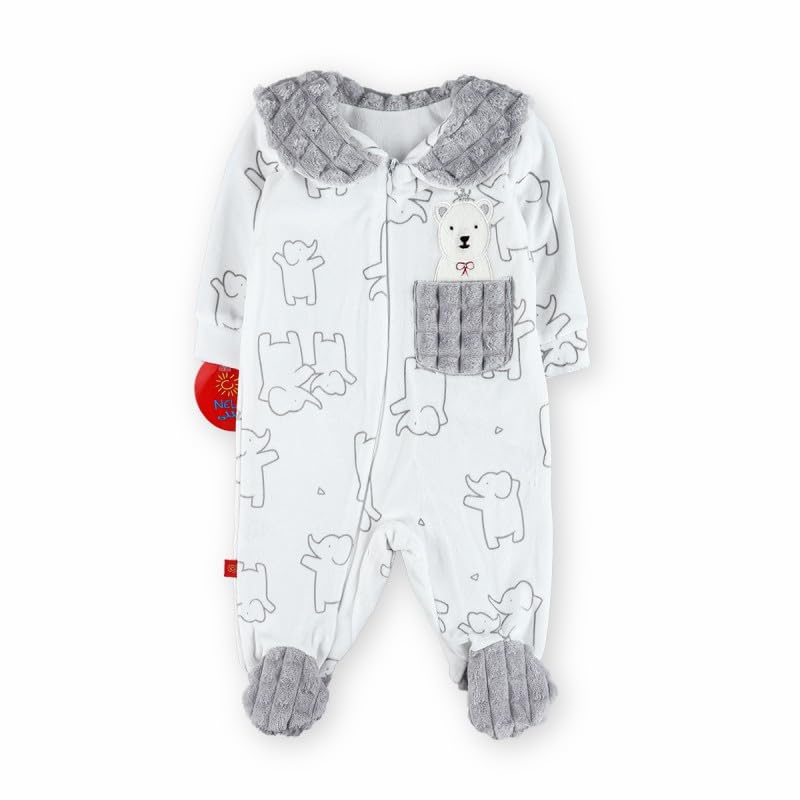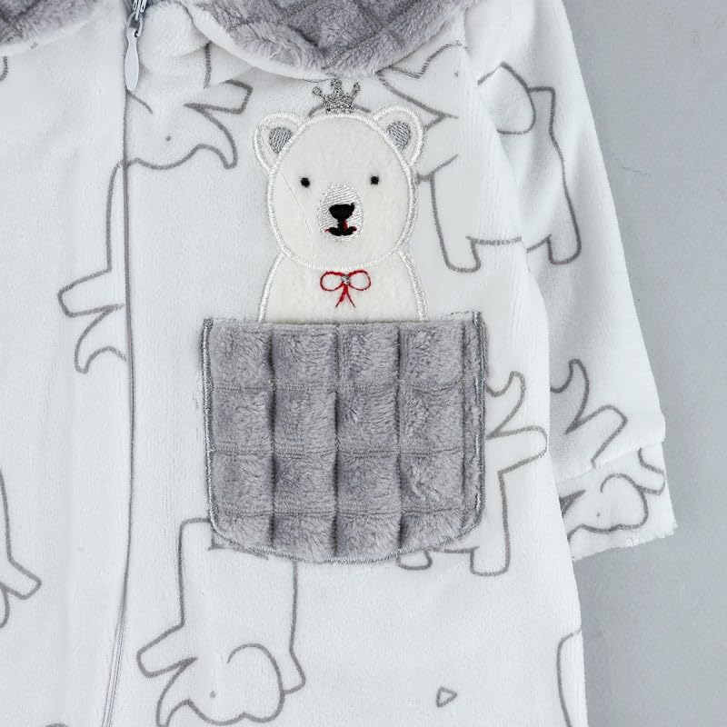 Generic - سالوبيت بغطاء راس بتصميم دب للاطفال البيبي، رمادي، مقاس 0-3 اشهر