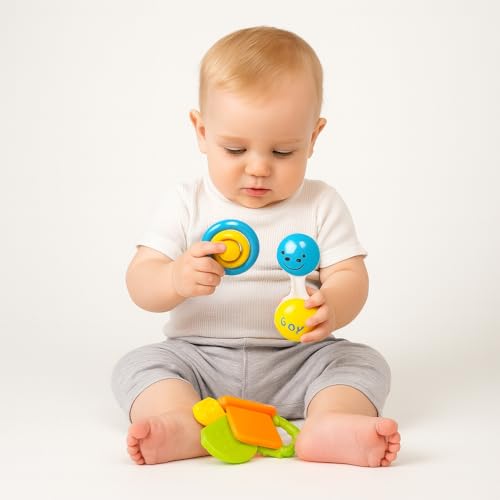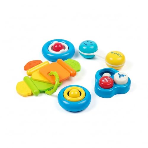 - مجموعة كاملة: تتضمن 4 قطع خشخيشة فريدة الشكل بتصميم متعدد الألوان، مما يوفر تنوعًا وتحفيزًا بصريًا لإبقاء الأطفال مستمتعين أثناء اللعب دون الحاجة إلى التجميع.