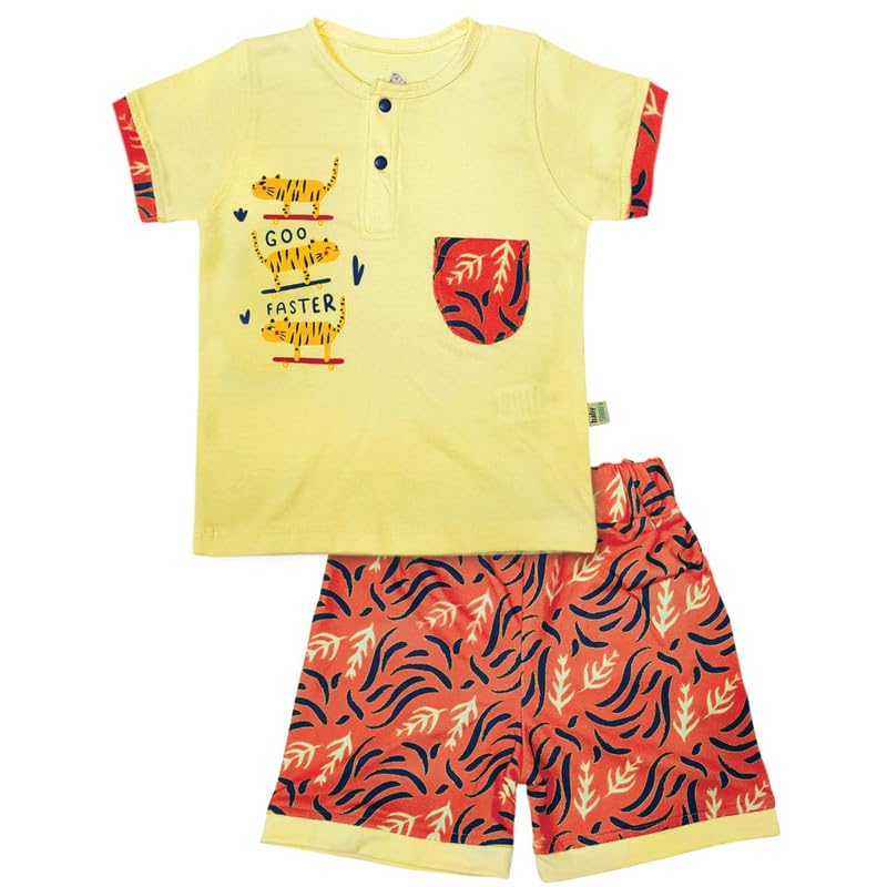 Baby Shoora - بيجامة للأولاد مكونة من تيشرت نصف كم مطبوع بعبارة Go Faster وشورت من بيبي شورا (عبوة من قطعة واحدة)