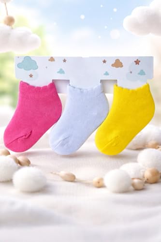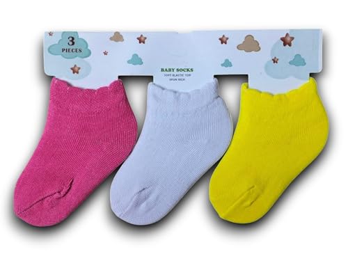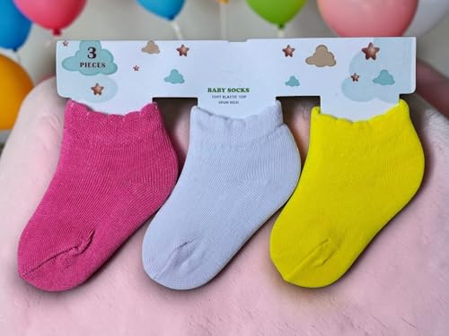 Generic - جوارب للأطفال – حديثي الولادة – من عمر شهر إلى 3 أشهر – مجموعة مميزة من 3 جوارب (Pink - Yellow - White)