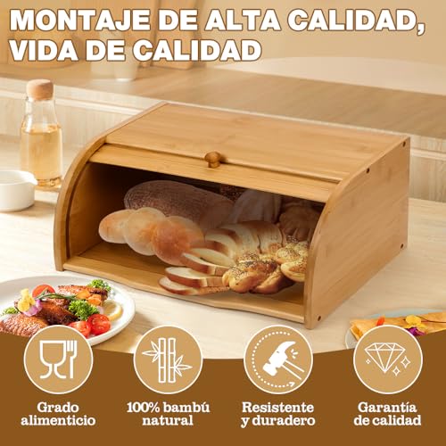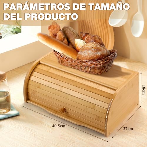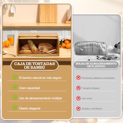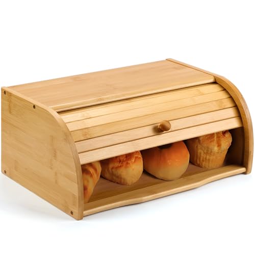 Roartoy - سلة خبز من الخيزران، سلة خبز كبيرة مع غطاء قابل للطي، لتخزين الخبز في المطبخ، صندوق خبز عتيق، صندوق تخزين الخبز، صندوق خبز لسطح طاولة المطبخ