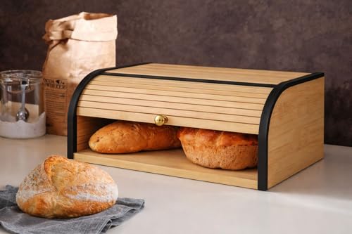 Generic - صندوق خبز من الخيزران، صندوق تخزين طعام بغطاء منزلق، 38.1 × 24.89 سم، تصميم خشبي طبيعي للمطبخ