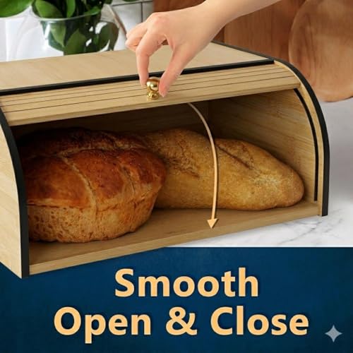- تصميم عملي وأنيق: صندوق خبز بغطاء منزلق مصنوع من الخشب الطبيعي بتشطيب ناعم ومصقول، يضيف لمسة جمالية دافئة لمطبخك مع الحفاظ على الخبز والمخبوزات طازجة