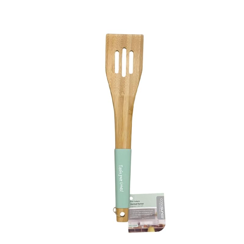 Generic - ملعقة تقديم مكرونة للمطبخ من الخيزران بمقبض سيليكون اخضر نعناعي، اداة تقديم خشبية