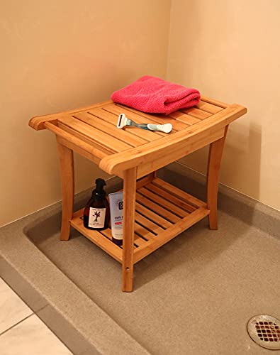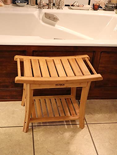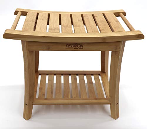Redmon - مقعد استحمام من الخيزران بمقابض جانبية