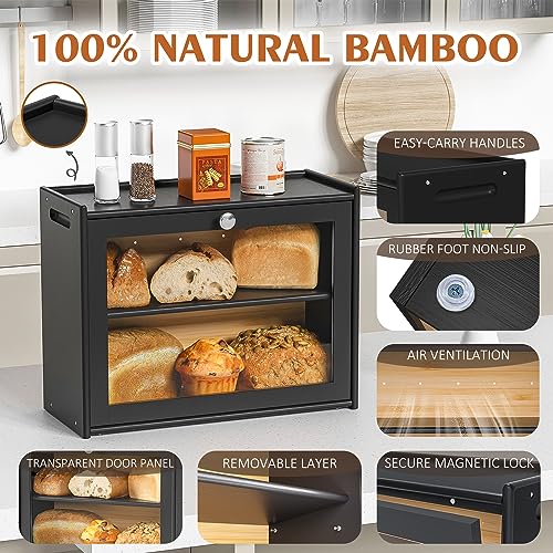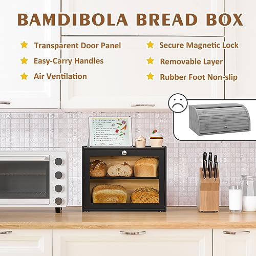 Bamdibola - صندوق خبز لسطح طاولة المطبخ حاوية كبيرة مزدوجة الطبقات مع باب شفاف تخزين الخبز سهل الحمل ومتعدد الاستخدامات لتخزين الفاكهة والوجبات الخفيفة في المكتب وما إلى ذلك التجميع والتنظيف