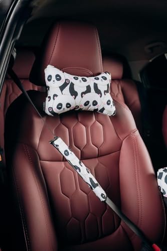 Generic - طقم سيارة من باندا مكون 6 قطع وسادة رقبة السيارة وغطاء مناديل ورقية عجلة القيادة حزام الأمان للسيارة