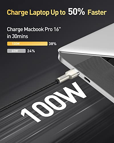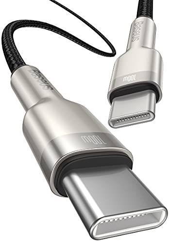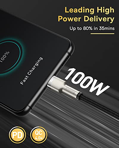 Baseus - كابل شحن سريع USBC-C 100 وات نقل بيانات بشحن فائق 5 امبير للشحن السريع 3.0 لايباد ميني 6 ماك بوك برو 2021 14 و16 بوصة اير ايباد 12.9 سامسونج S21+ هواوي P30 من باسيوس 1 متر أسود