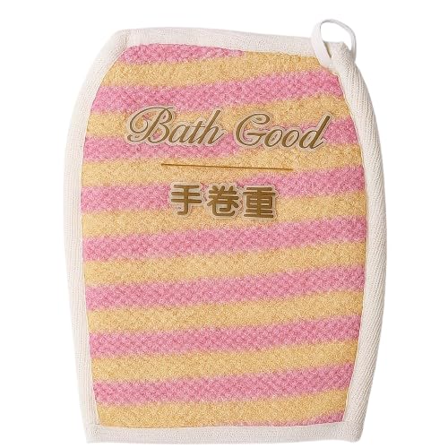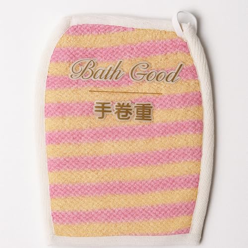 GOGO.EG - جوانتي M-28 من القطن، لتقشير الجسم أثناء الاستحمام، مع حلقة تعليق، بتصميم مخطط باللونين الوردي والأصفر