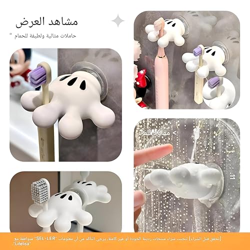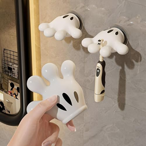 Generic - ملحقات الحمام - يتميز تصميم شخصية ميكي ماوس المثبت على الحائط متعدد الوظائف بخطافات شفط قوية لتخزين فرشاة الأسنان بشكل مريح وديكور أنيق (3 قطع)