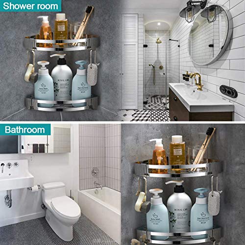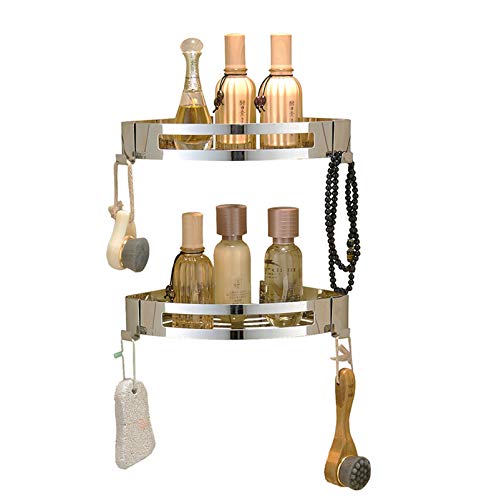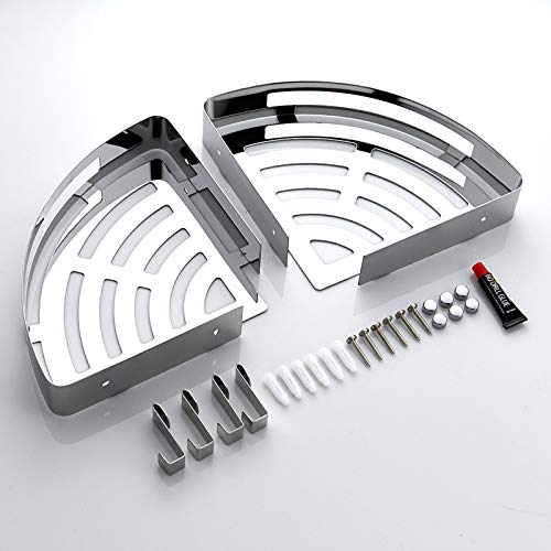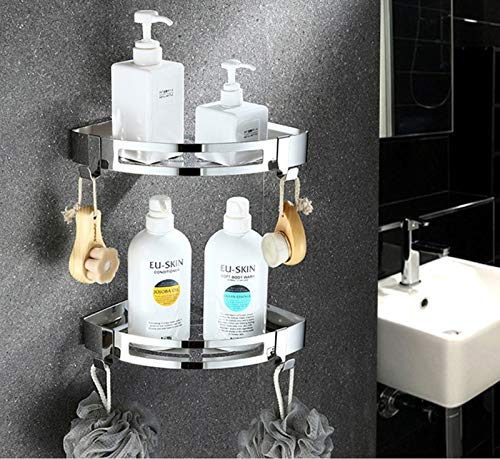 generic - رفوف زاوية الحمام ذاتية اللصق بدون ثقب منظم تخزين يثبت على الحائط مع خطافين من الستانلس ستيل 304 المقاوم للصدا سلال منظمة مثلثة للمطبخ والمرحاض