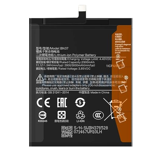 Generic - بطارية ليثيوم ايون بوليمر بديلة جديدة BN37 متوافقة مع موبايل شاومي ريدمي 6 / ريدمي 6 ايه، بطارية 3000mAh 3.85 فولت (متوافقة مع ريدمي 6 ريدمي 6A BN 37)